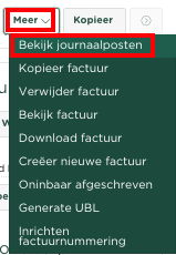 Als we nu willen zien welke boekingen er zijn aangemaakt, selecteren we vanuit het Meer menu Bekijk journaalposten