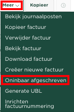 Vervolgens selecteren we vanuit het Meer menu de optie Oninbaar afgeschreven