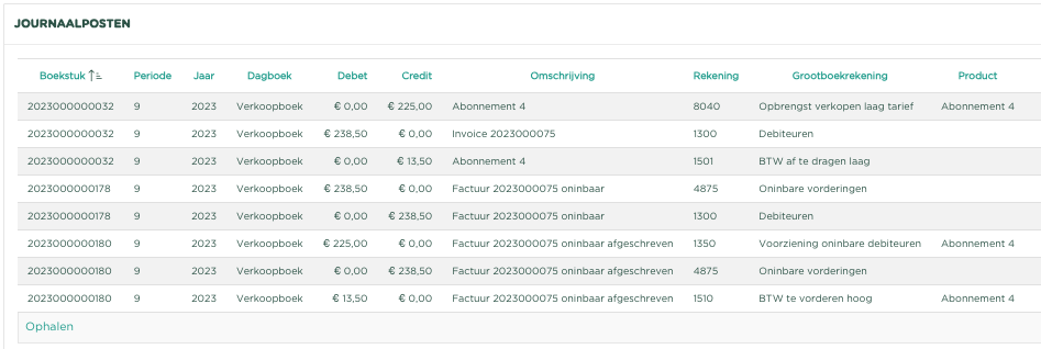 Zoals je kunt zien heeft de factuur nu de status Oninbaar afgeschreven gekregen