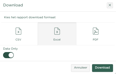 In het volgende voorbeeld kiezen we voor een download van een Excel sheet