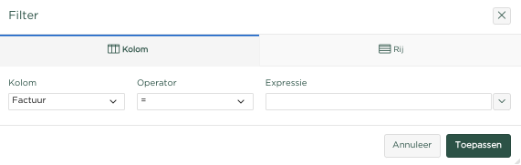 Kolom filtering - Klik op een van de kolomtitels (Factuur in dit voorbeeld)