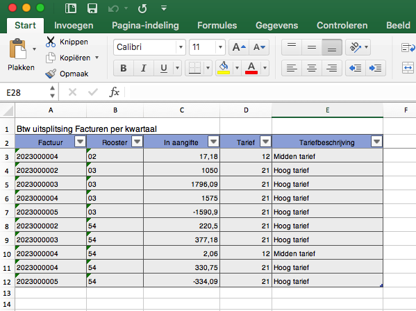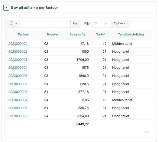 Btw uitsplitsing per factuur