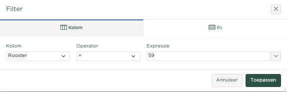 Bovenstaand voorbeeld toont het activeren van een filter op Rooster 59