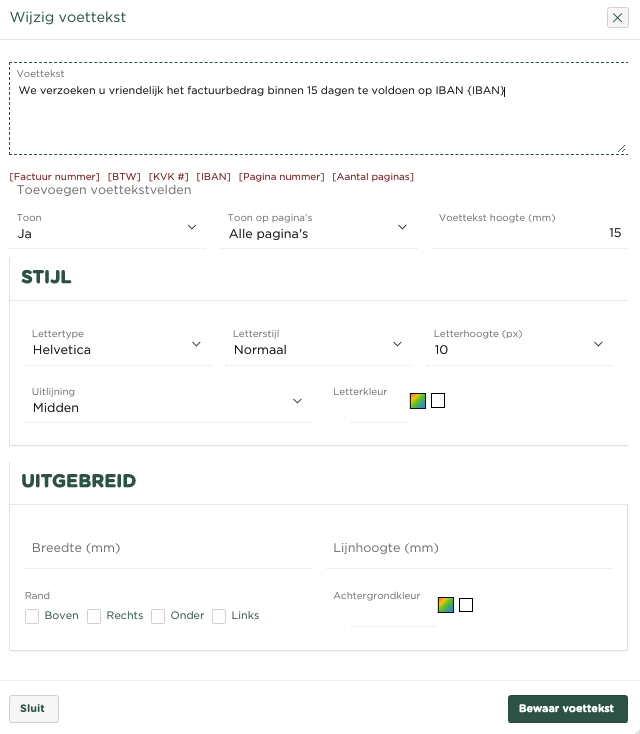 Binnen dit kader kunnen een 2-tal Voettekst regels worden opgenomen
