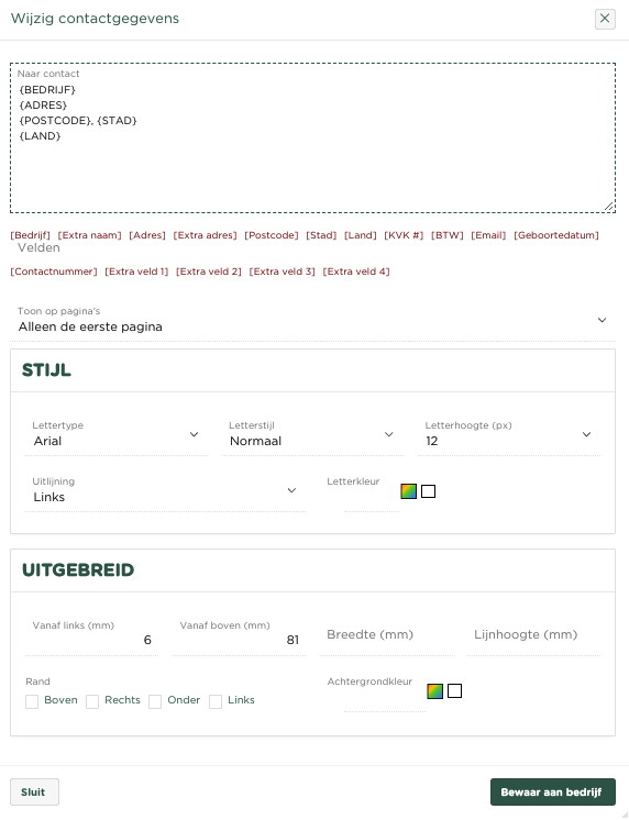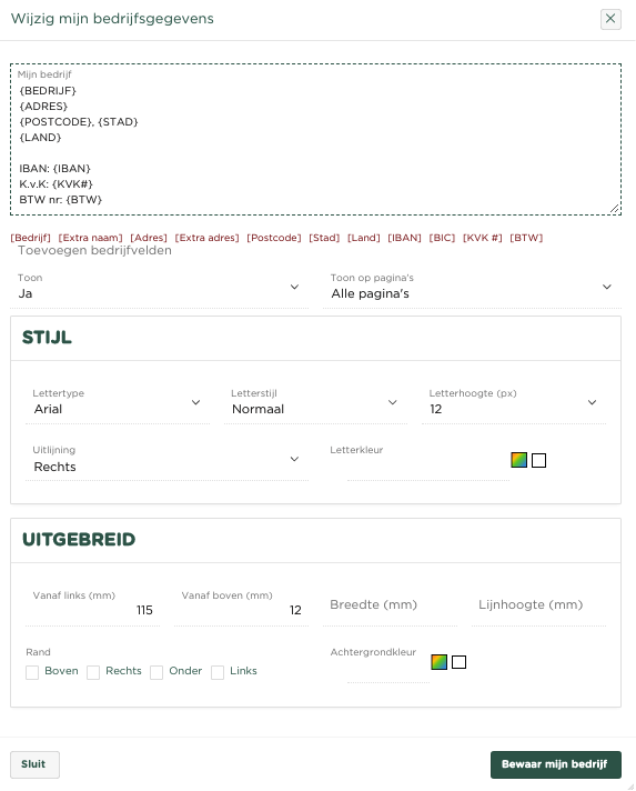 {ADDRESS} Dit veld zal bij de creatie van een offerte worden vervangen door je Bedrijfsadres