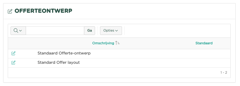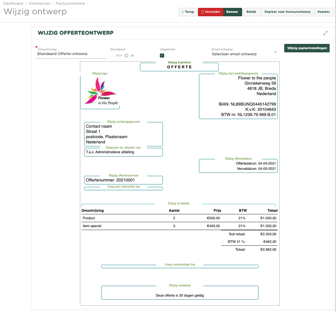 Tijdens de initiële inrichting van uw administratie is het huidige offerteontwerp bepaald.