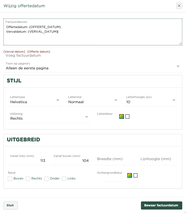 {INVOICE_DATE} Dit veld zal worden vervangen door de offertedatum
