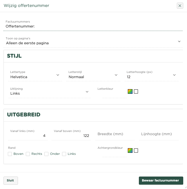 Leg hier vast welke tekst er voor het offertenummer op de offerte moeten worden geplaatst