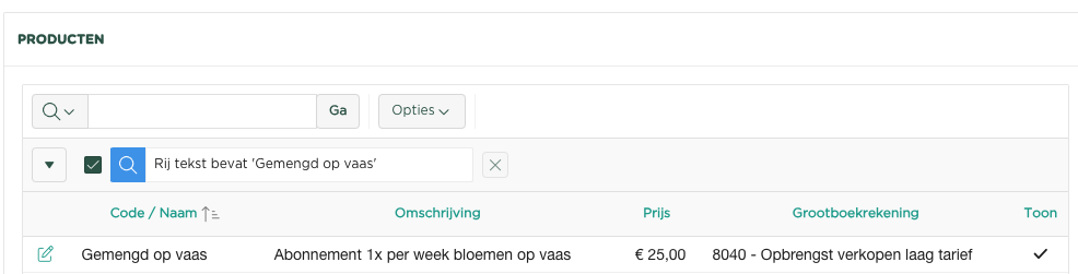 In dit voorbeeld selecteren we het product ‘Gemengd op vaas’