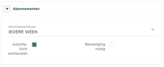 Tevens kan hier worden aangegeven of voor het betreffende abonnement een bevestiging nodig is om het eventueel automatisch te verlengen.