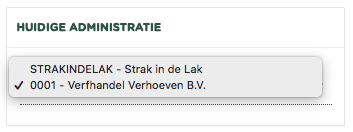 Als we deze nu selecteren wordt automatisch de administratie gewisseld en werken we in de Strak in de Lak administratie