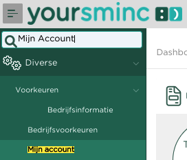 Type links boven in de pagina in het 'zoek veld' 'Mijn Account', waarna de optie (geel belicht) wordt getoond