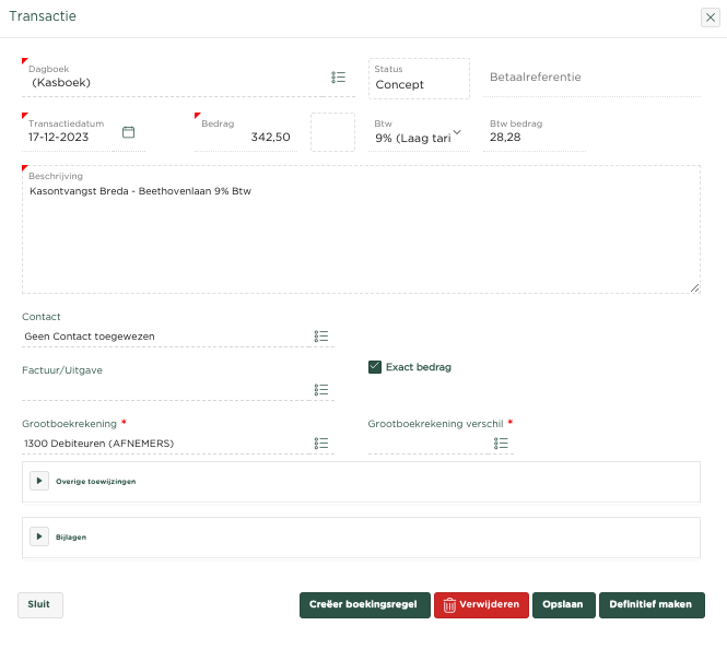 Voor het handmatig invoeren van een kastransactie kijken we naar het volgende voorbeeld:
