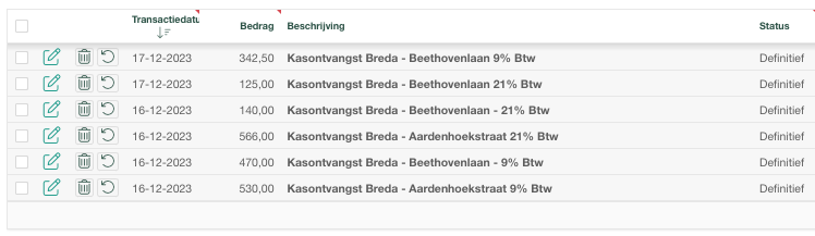 - Definitief - Transactie is ingevoerd en geboekt binnen het grootboek. Je bent nu nog steeds in staat om de transactie aan te passen als je zou willen.