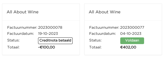Als we nu de pagina Facturen - Overzicht zouden raadplegen zien we dat de betreffende facturen zijn afgehandeld.