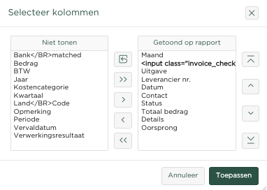 knop, zodat deze kolom onder Getoond op rapport terecht komt.