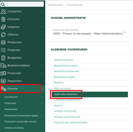 Selecteer vanuit het menu Diverse - Gebruikersbeheer