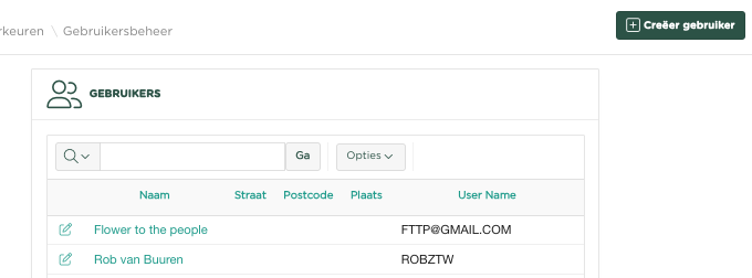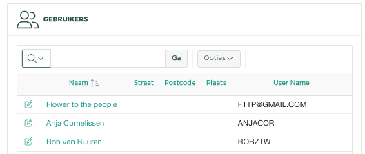 De overzichtpagina toont alle gebruikers welke momenteel bekend zijn.