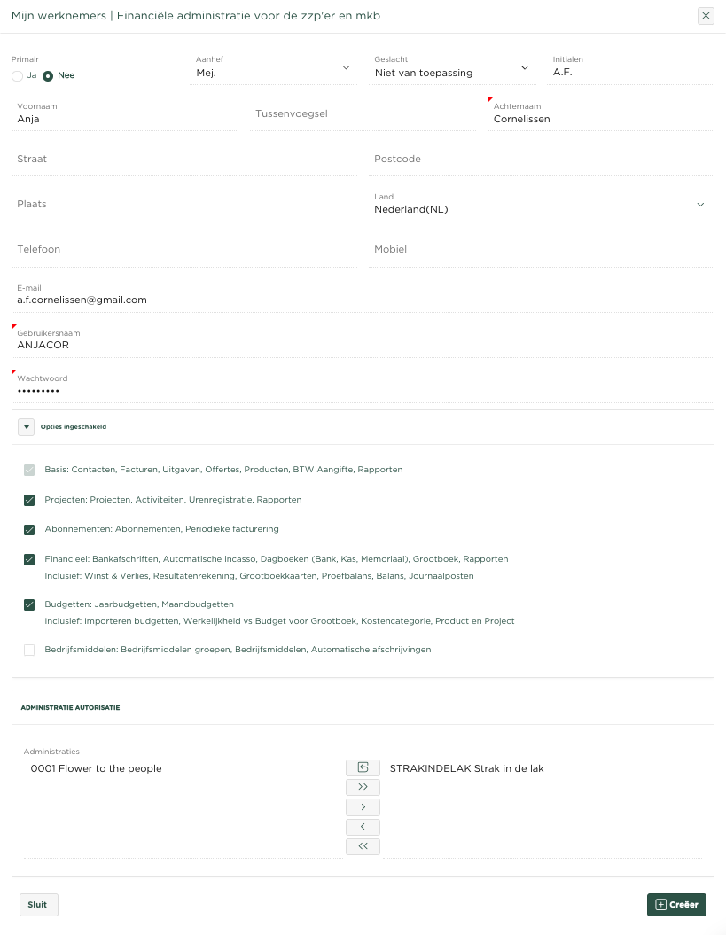 Administratie autorisatie - Geef aan welke tot welke van de aanwezige administraties, de nieuwe gebruiker toegang heeft.
