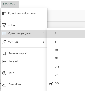 Selecteer het aantal rijen dat per pagina wordt getoond