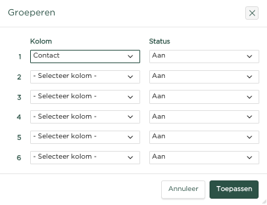 Kies hier een of meerdere klommen om op te groeperen en druk op