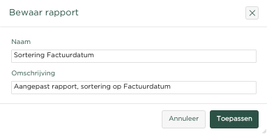Sla een rapport op met een specifieke naam en omschrijving, om zo aangebrachte wijzigingen te bewaren.