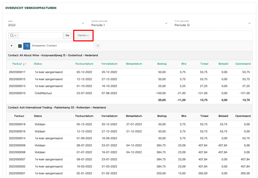 Om dit verder toe te lichten nemen we rapportage "Overzicht Verkoopfacturen" als voorbeeld: