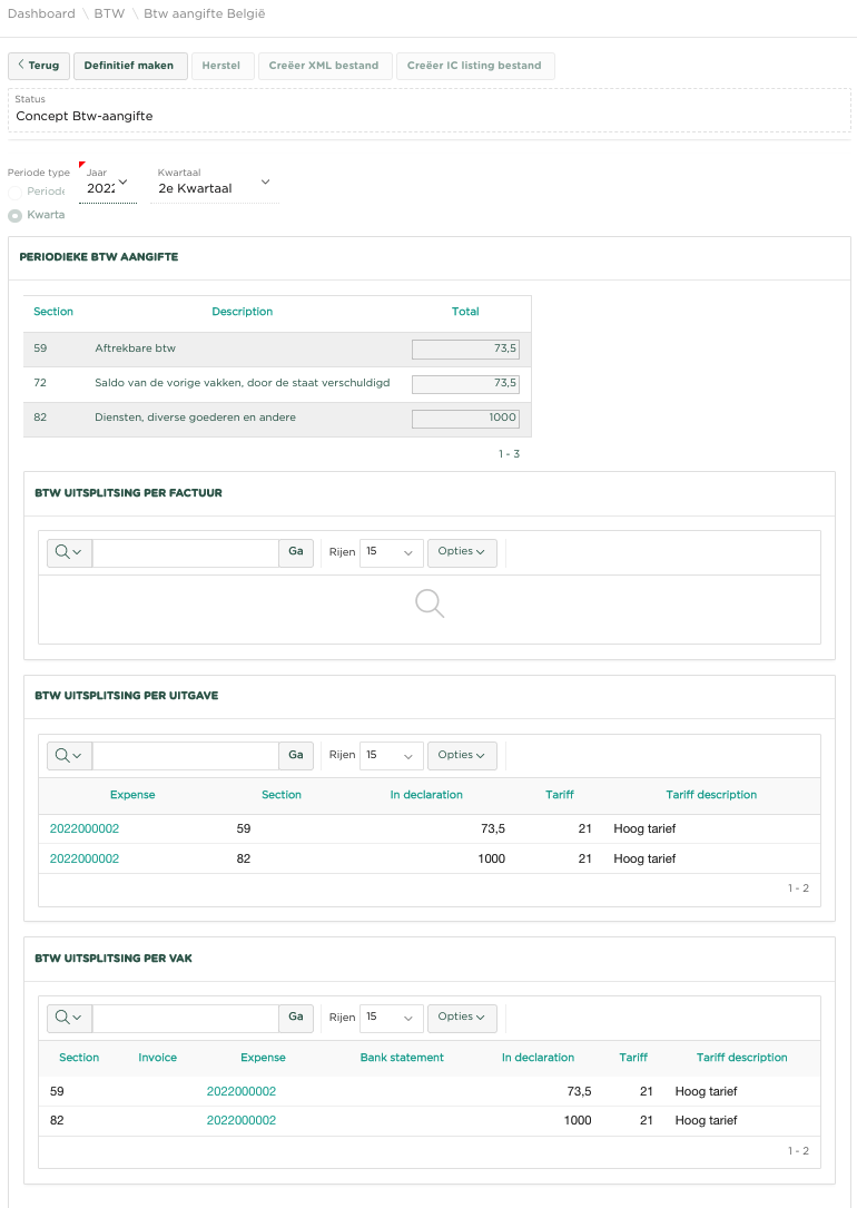 En kiezen we voor de Btw-aangifte, zien we op welke wijze de betreffende Uitgave is verwerkt.